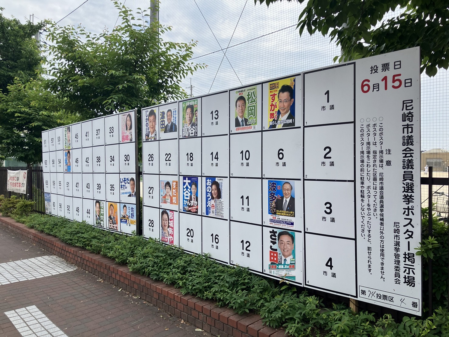 この日は、尼崎市議会議員選挙のポスター貼りを、門県議と共に担当しました。